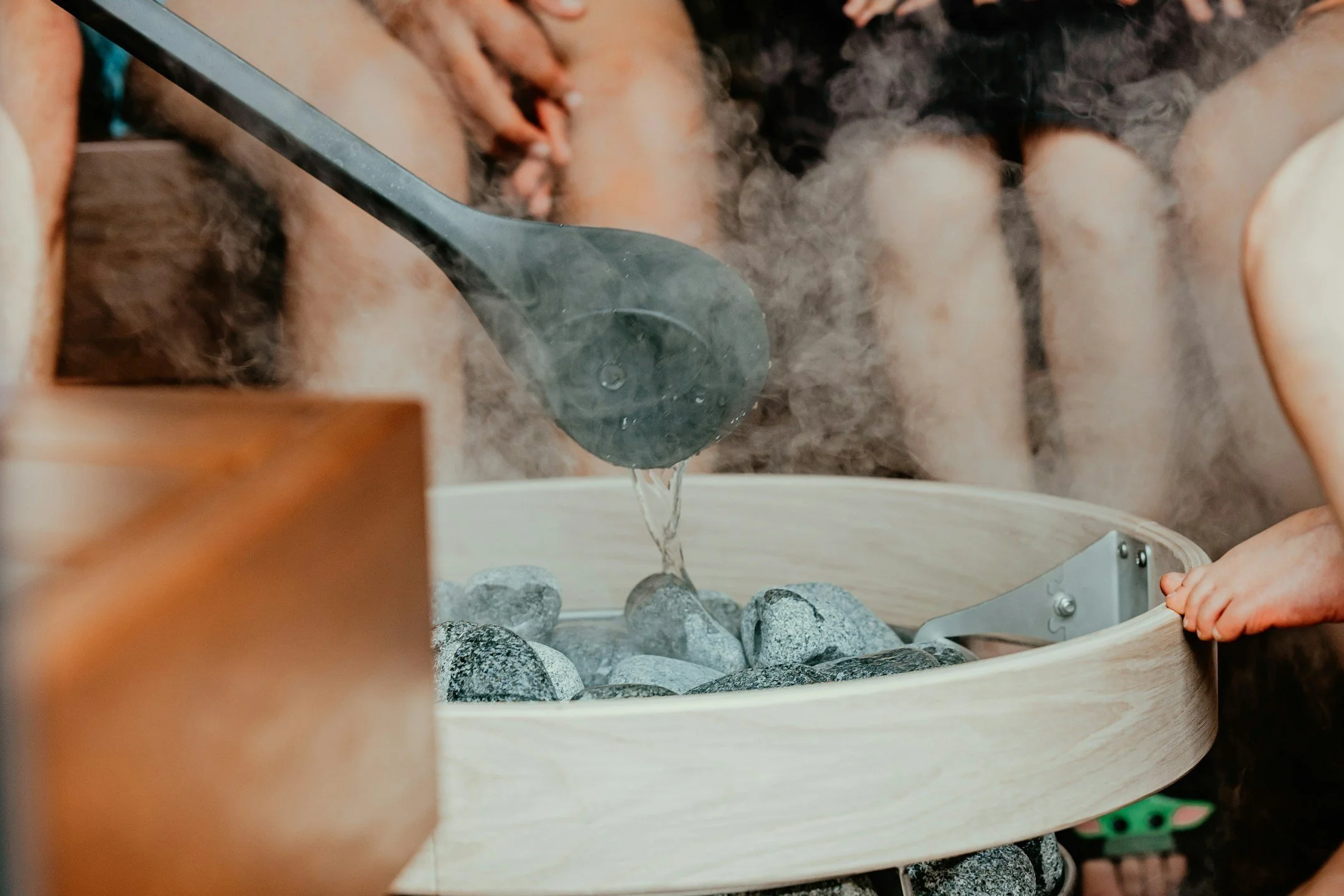 We offer two separate 6 person cedar wood barrel saunas in our outdoor space. The barrel shape originated in Scandinavia, borrowing from centuries old barrel-making techniques. This shape offers efficient heat retention for the very best sauna session.